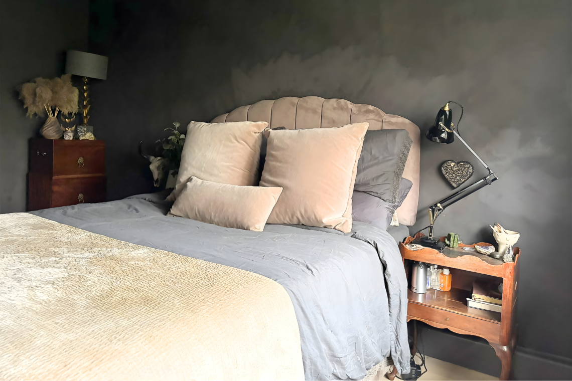 As you walk down the corridor, you’ll discover the bedroom straight ahead, featuring a luxurious king-sized bed and a boutique hotel-suite atmosphere that feels warm, elegant, and indulgent. An electric blackout blind ensures total darkness for a restful night’s sleep. Even though the apartment is in the lively heart of Shepherd’s Bush, the road itself is wonderfully quiet, and most mornings, the only sound you’ll hear is the gentle chirping of birds, a detail the owner truly appreciates.