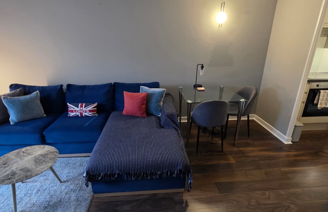 As you enter the apartment, you’re welcomed into a bright and modern open-plan living area, thoughtfully designed with comfort and functionality in mind. The space features a comfortable sofa and Smart TV — perfect for relaxing after a day exploring the city.