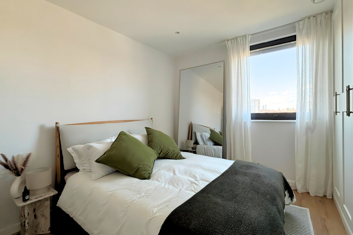 A spacious one-bedroom flat on the third floor of a modern new build, just a stone’s throw from central London, with lovely views across the skyline. Enjoy sunsets from the private balcony or head up to the large shared rooftop terrace, a great spot to watch London’s New Year’s Eve fireworks. With free access to the residents’ gym, a comfortable living room with a 55” smart TV, and a barista-style coffee machine, this lived-in home makes an ideal base for your trip to London.